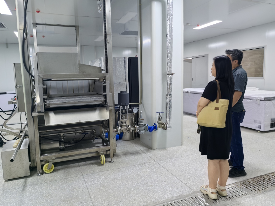 5月23日,我校成果转化中心主任张潇文一行前往我校预制菜中试研发基地,针对基地建设运营情况展开专题调研。预制菜基地王立春老师对酱卤肉类、速冻米面、川式复合调味料三条核心预制菜生产线的建设规划、运行现状及技术亮点进行了深入介绍。